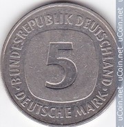Страна - Федеративная Республика Германия Номинал - 5 марок Год - 1975 Материал - Медно-никелевый сплав Масса(г) - 10 Диаметр(мм) - 29 Толщина(мм) - 2.07 Отметка монетного двора:"J".