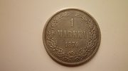 Монета 1 маркка 1874 года Александр II Русская Финляндия.